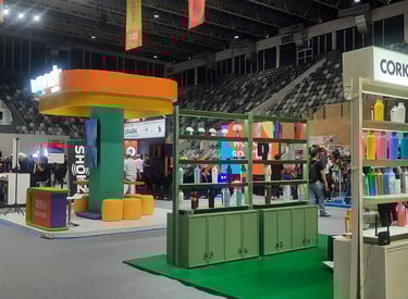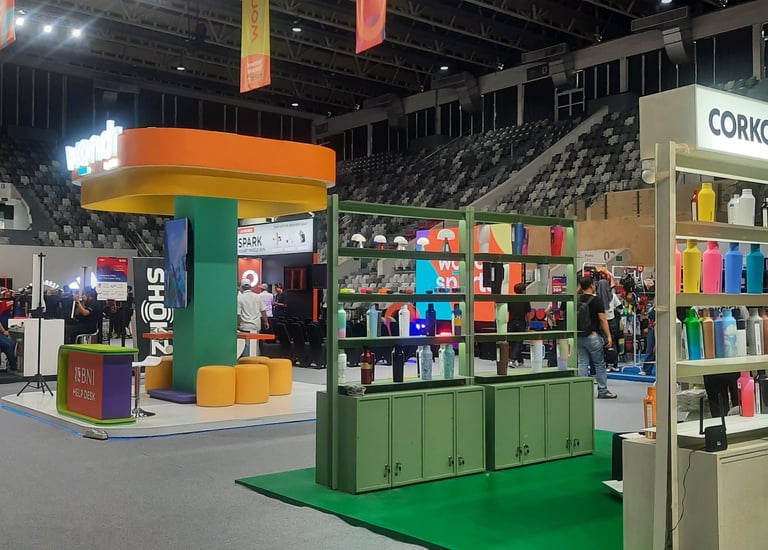 Desain dan pembangunan booth pameran. Logistik, termasuk pengiriman barang.